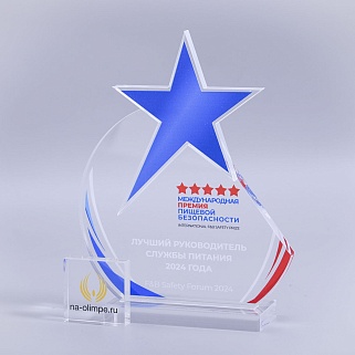 Приз из акрила Звезда 64 с гравировкой и цветным нанесением, высота 17 см