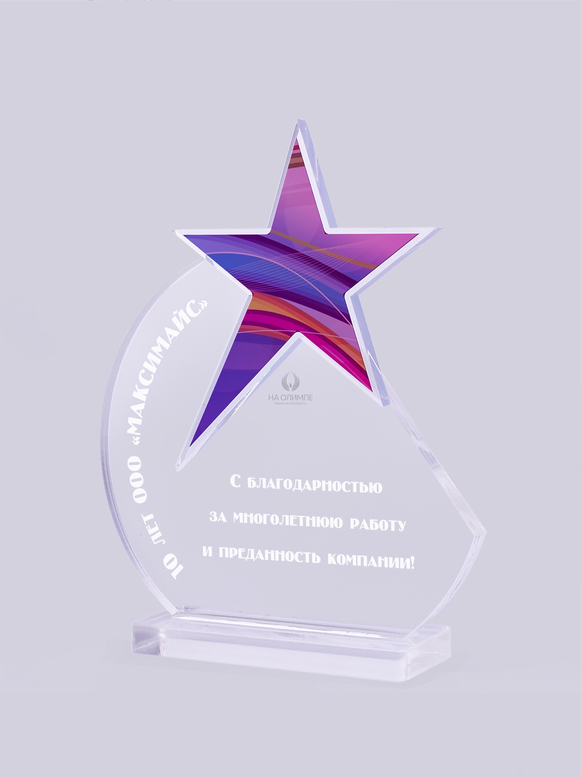 Приз из прозрачного акрила с гравировкой и цветной печатью.