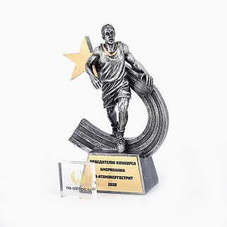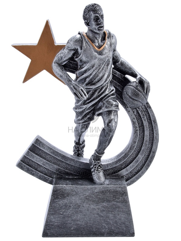 Литая фигура из металлизированного пластика на металлическом каркасе. Транспортировочная коробка в комплекте.