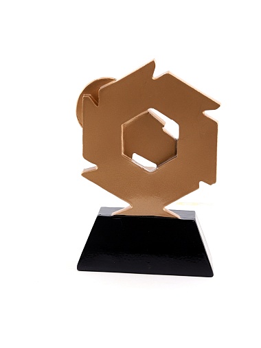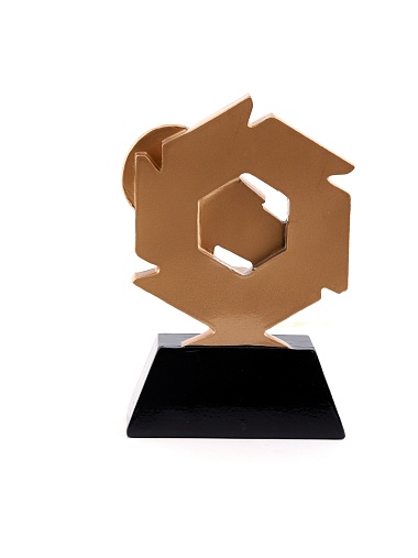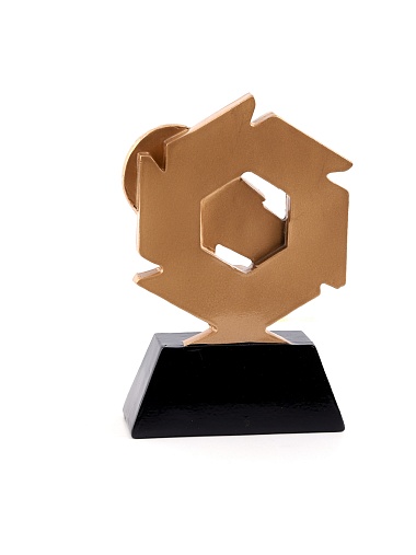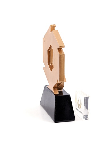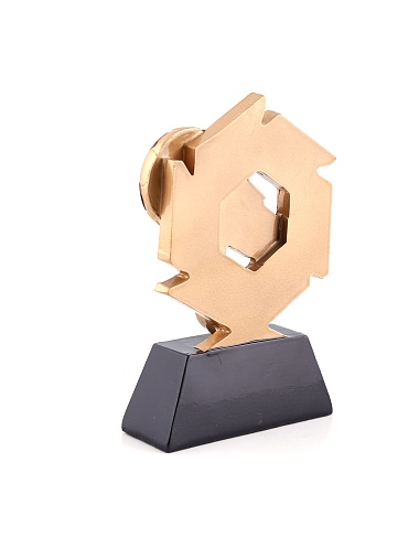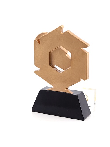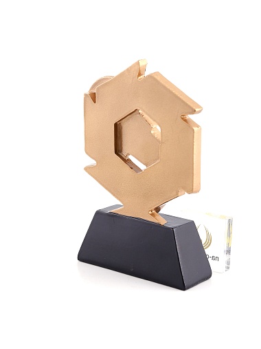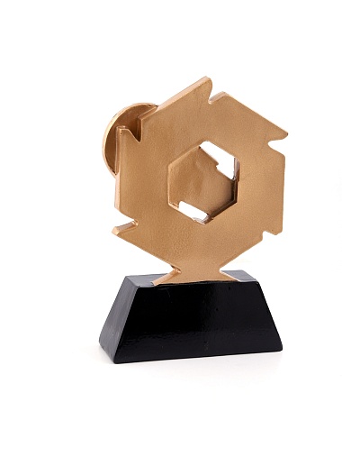 Литая фигура из металлизированного пластика на металлическом каркасе. Транспортировочная коробка в комплекте. Вес награды без упаковки 285гр.