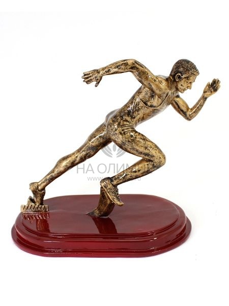 Литая фигура из металлизированного пластика на металлическом каркасе. Деревянное основание в комплекте.