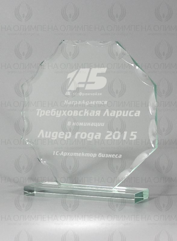 Стеклянная награда 1558 с лазерной гравировкой, высота 16 см