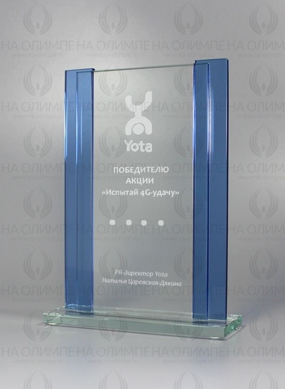 Стеклянная награда 80304 с гравировкой, высота 22 см
