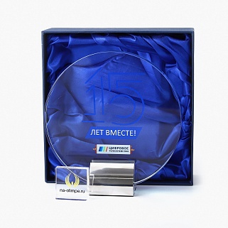 Стеклянная награда C105 с цветным нанесением, высота 17 см