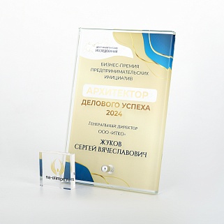 Стеклянная награда с полноцветным нанесением. Толщина стекла 10 мм. Поставляется в комплекте с подарочным футляром. Вес награды без футляра 558гр. Стоимость указана за нанесение на одной стороне, печать выполняется на задней стенке награды.