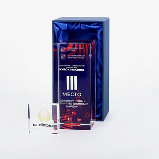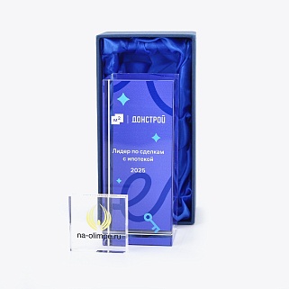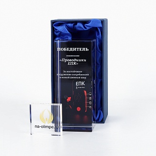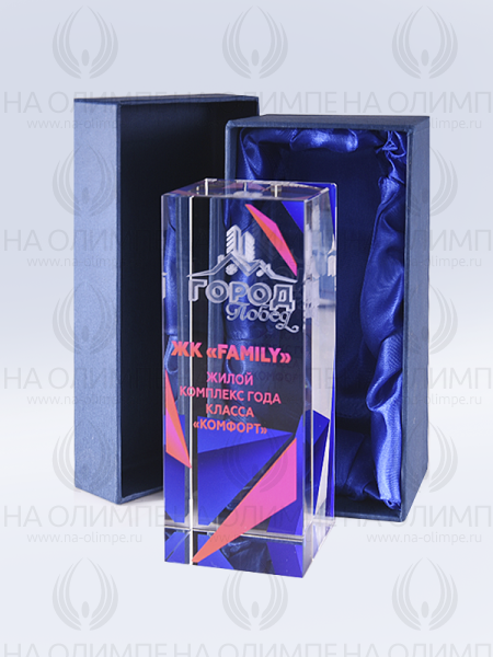 Награда из оптического стекла с 3D гравировкой и цветным нанесением. Поставляется в комплекте с подарочным футляром. Вес награды без футляра 747гр. Стоимость указана за нанесение на лицевой и оборотной стороне награды. Возможность нанесения на дополнительной стороне и стоимость этих работ можно уточнить у менеджеров.