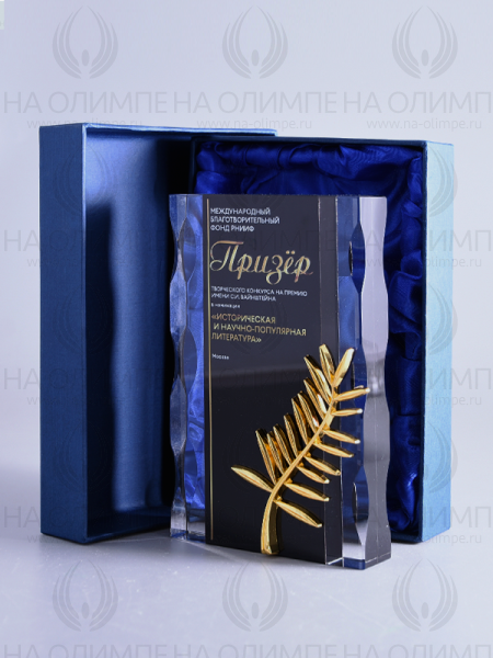 Стеклянная награда с полноцветным нанесением. Поставляется в комплекте с подарочным футляром. Вес награды без футляра 1080гр.