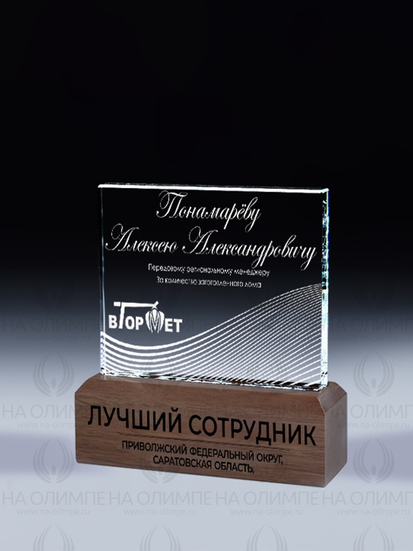 Закажите к награде дополнительно стеклянную медаль. Получится красивый солидный комплект!