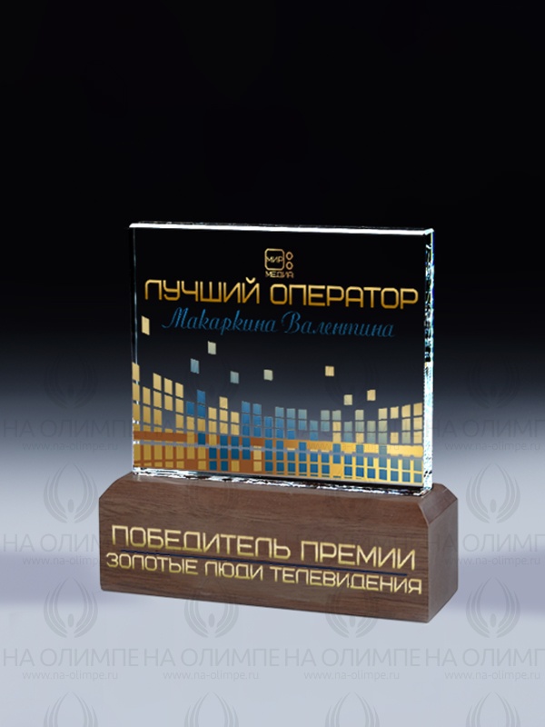 Стеклянная награда C68-150 с цветным нанесением, высота 14.5 см