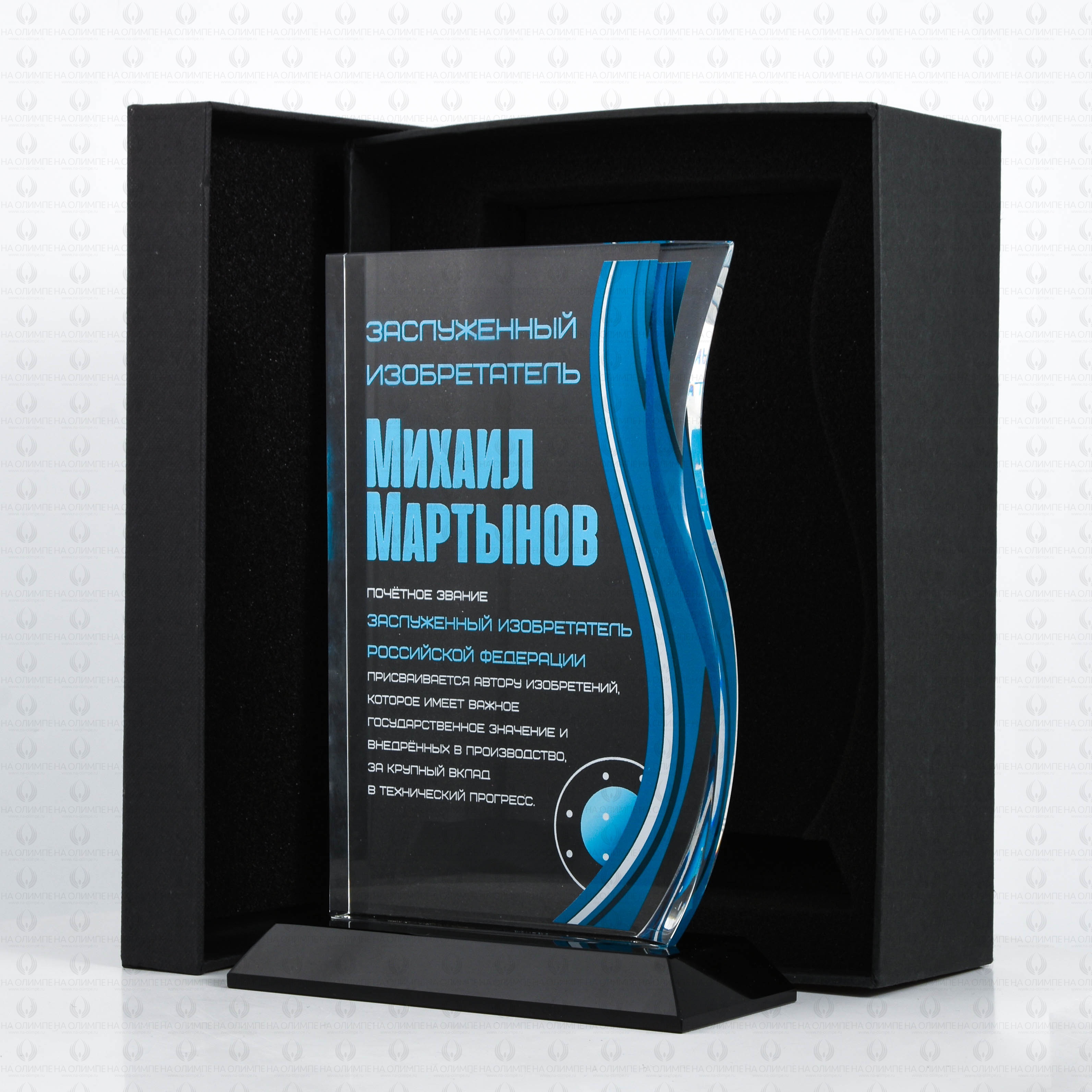 Закажите к награде дополнительно стеклянную медаль. Получится красивый солидный комплект!