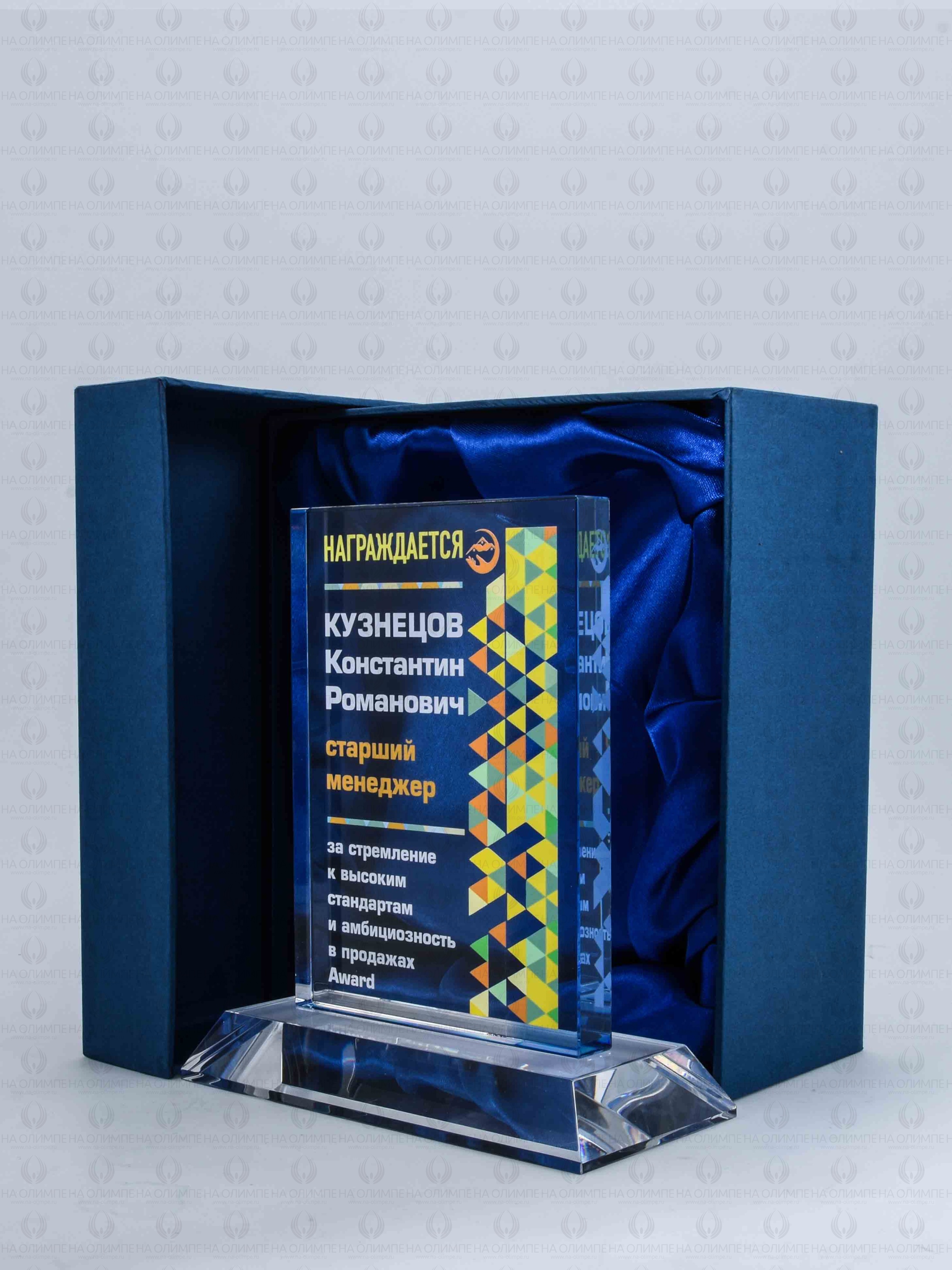 Стеклянная награда C8-170 с цветным нанесением, высота 16.8 см