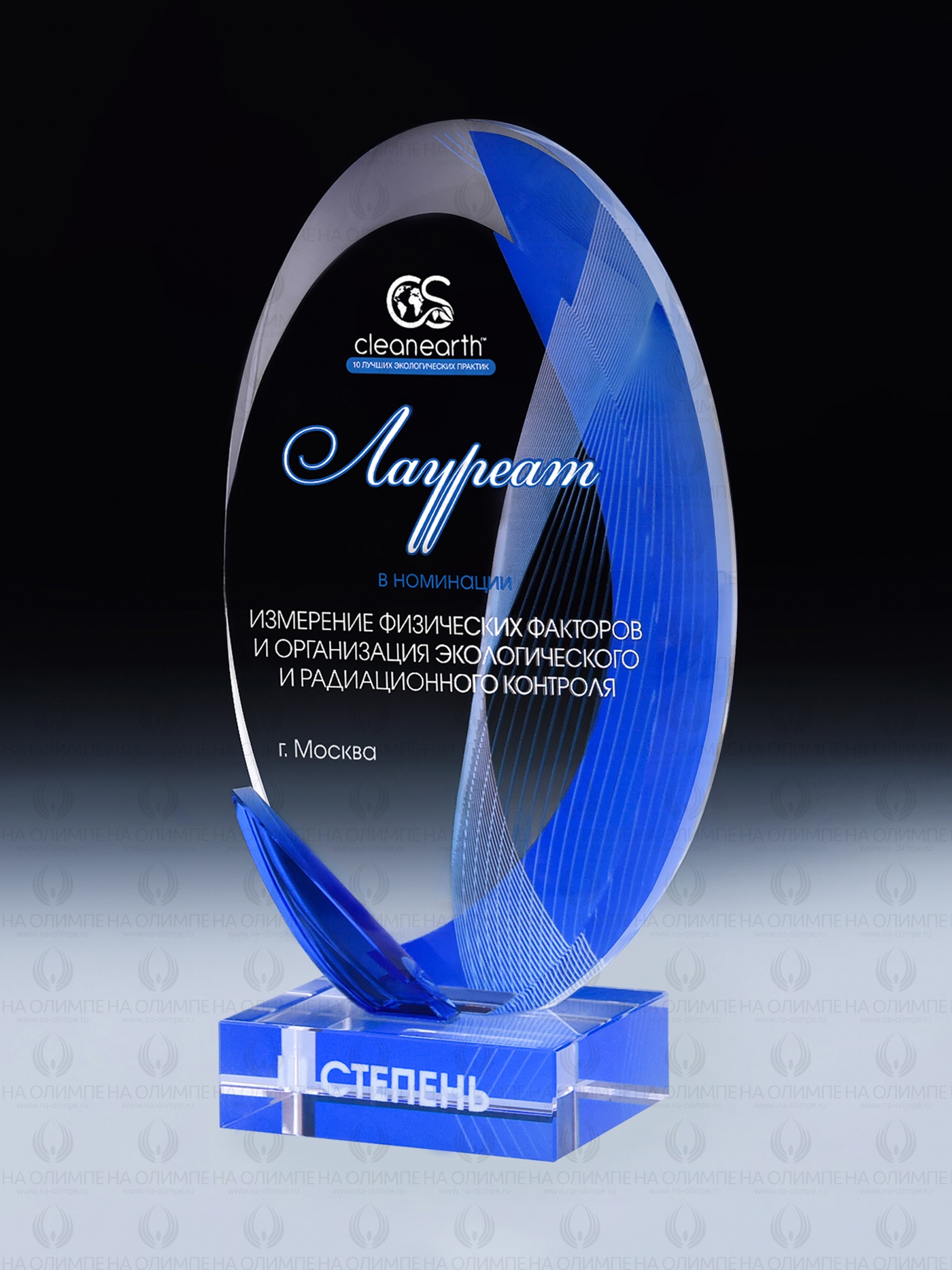 Стеклянная награда C97 с цветным нанесением, высота 22.5 см