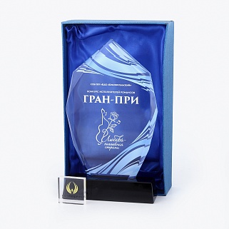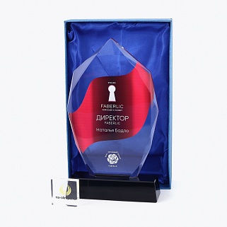 Стеклянная награда с полноцветным нанесением. Толщина стекла 12 мм. Поставляется в комплекте с подарочным футляром. Вес награды без футляра 1215гр. Стоимость указана за нанесение на одной стороне, печать выполняется на задней стенке награды.
