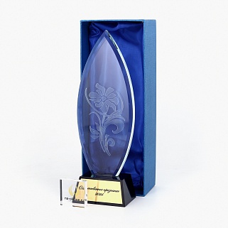 Стеклянная награда с полноцветным нанесением. Толщина стекла 15 мм. Поставляется в комплекте с подарочным футляром. Вес награды без футляра 885гр. Награду можно доукомплектовывать металлической или заливной табличкой с текстом и рисунком. Табличка в комплект не входит и заказывается отдельно. Стоимость указана за нанесение на одной стороне, печать выполняется на задней стенке награды.