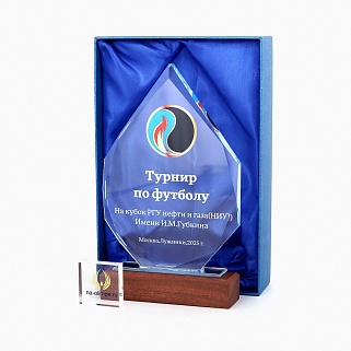 Стеклянная награда с полноцветным нанесением. Толщина стекла 15 мм. Может доукомплектовываться металлической или заливной табличкой с текстом и рисунком. Табличка в комплект не входит и заказывается отдельно. Поставляется в комплекте с подарочным футляром. Вес награды без футляра 735гр. Стоимость указана за нанесение на одной стороне, печать выполняется на задней стенке награды.