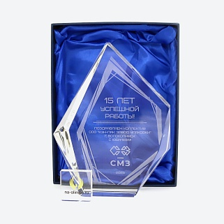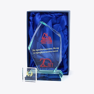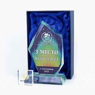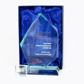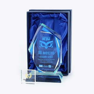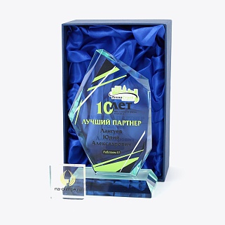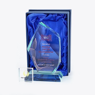 Стеклянная награда с полноцветным нанесением. Толщина стекла 19 мм. Поставляется в комплекте с подарочным футляром. Вес награды без футляра 780гр. Стоимость указана за нанесение на одной стороне, печать выполняется на передней стенке награды.