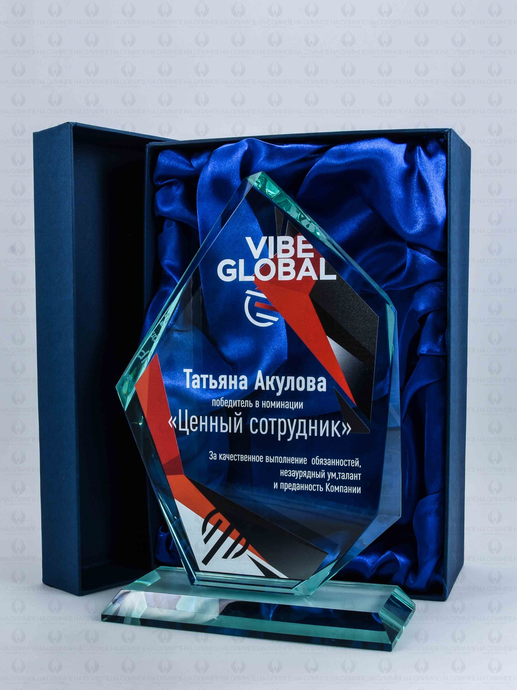 Стеклянная награда J24-170 с цветным нанесением, высота 17 см
