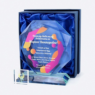 Закажите к награде дополнительно стеклянную медаль. Получится красивый солидный комплект!