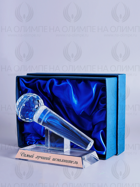 Стеклянная награда Микрофон C146 с табличкой, высота 13.5 см