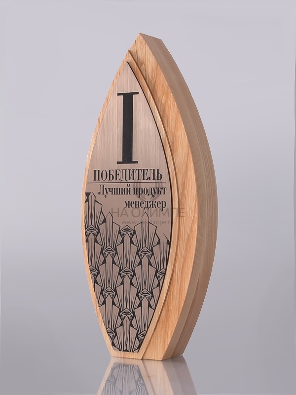 Деревянная награда премиум класса. Изготовлена из натурального дерева. Теплый, фактурный природный материал приятно держать в руке. Награда выполнена без пустот, поэтому имеет заметный вес.