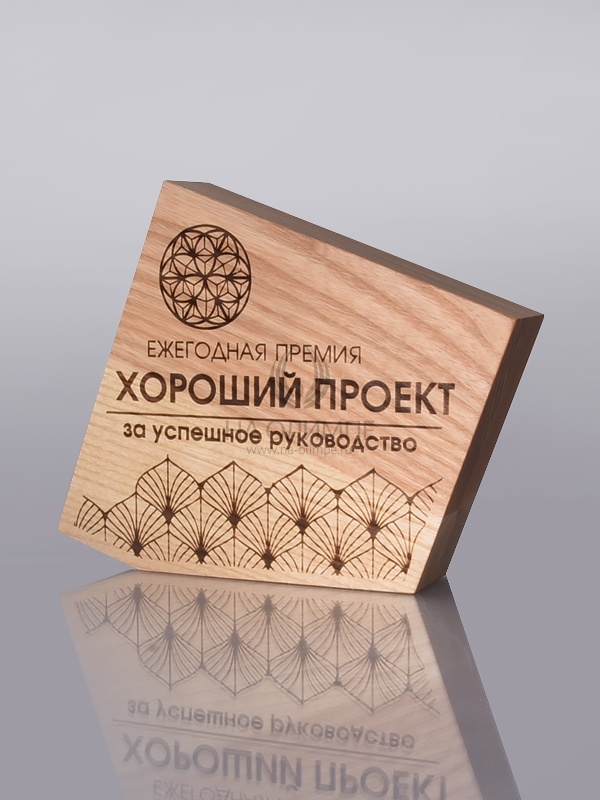 Деревянная награда премиум класса. Изготовлена из натурального дерева. Теплый, фактурный природный материал приятно держать в руке. Награда выполнена без пустот, поэтому имеет заметный вес.