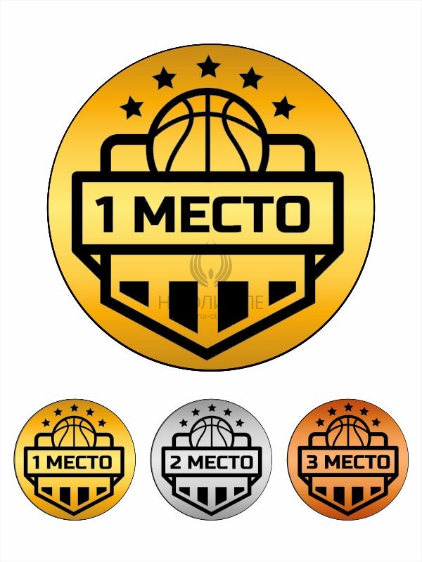 Вкладыш самоклеющийся D1 S50 1место Баскетбол, диаметр вкладыша 25 мм