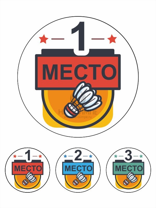 Вкладыш самоклеющийся D1 S62 1место Бадминтон, диаметр вкладыша 25 мм
