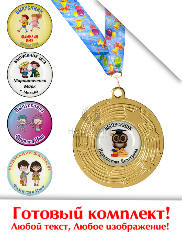 Выпускная медаль PL127 с заливным вкладышем и Выпускной лентой, вид ленты текстильная