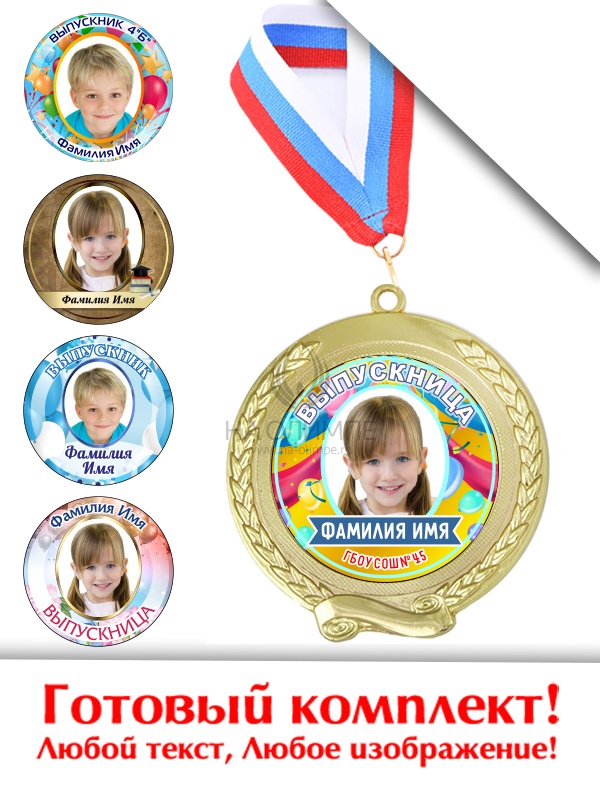 Выпускная медаль с фото NFZ 33 с текстильной лентой, вид ленты текстильная