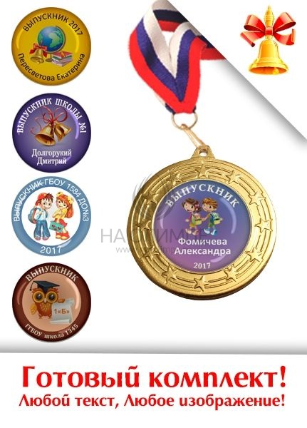 Выпускная медаль с заливным вкладышем MD Rus 404 G, вид ленты текстильная