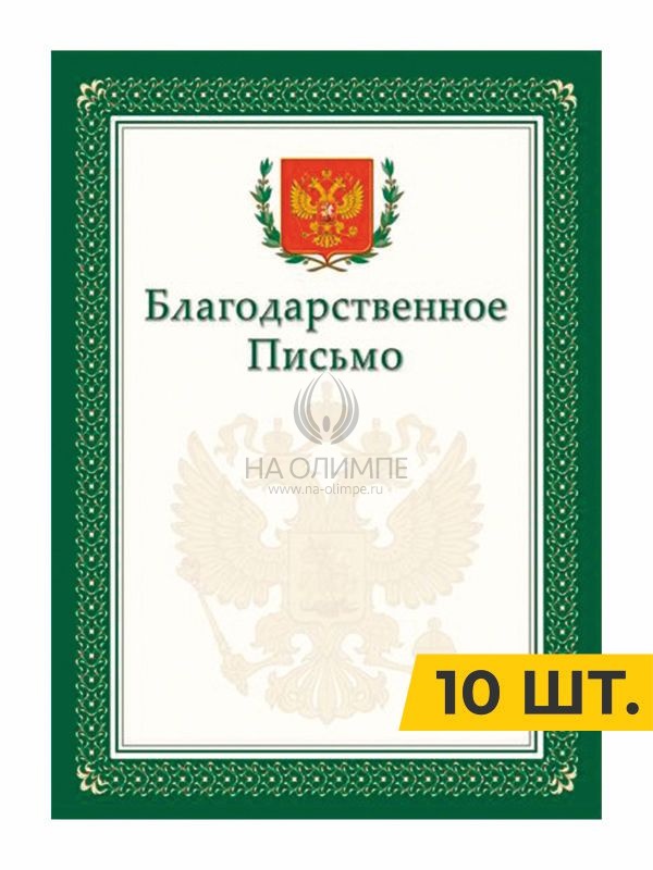 Благодарственное письмо №12 Зеленое (10шт), размеры a4 мм