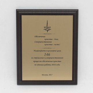 Плакетка H150 с лазерной гравировкой Pl 16 EG/Bk, размеры 113х150 мм