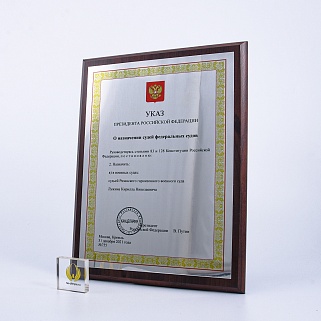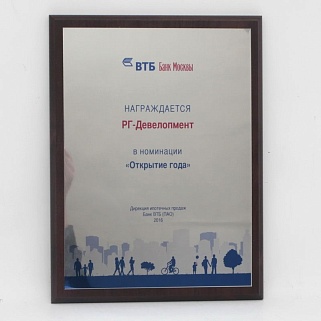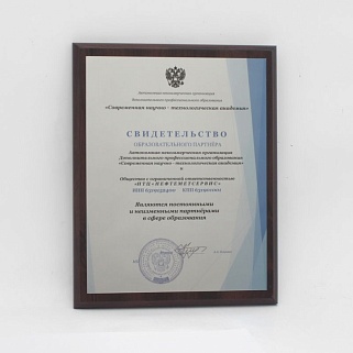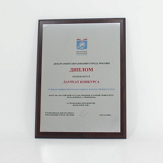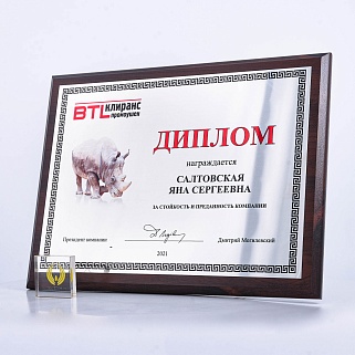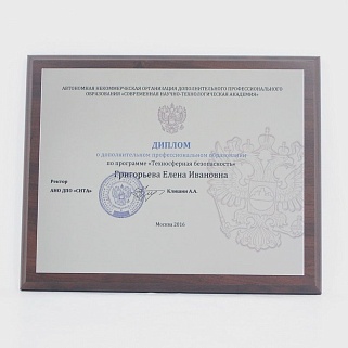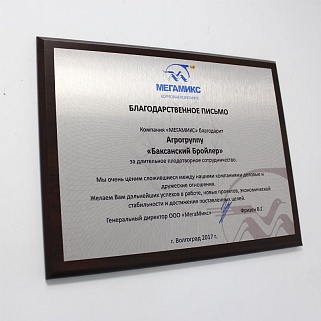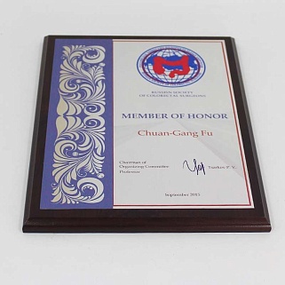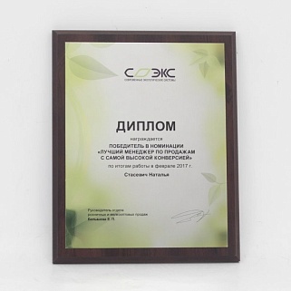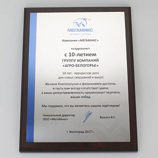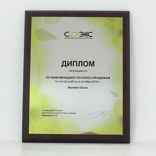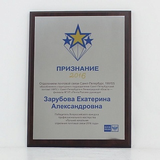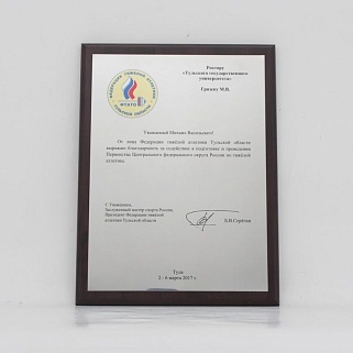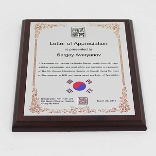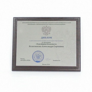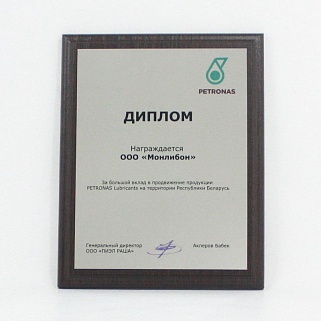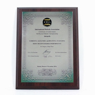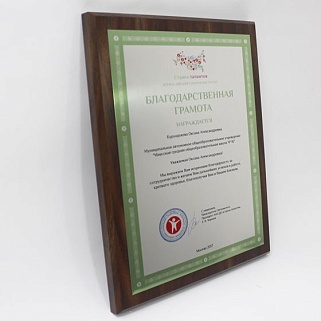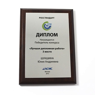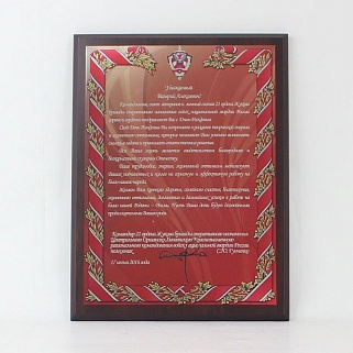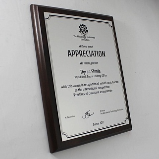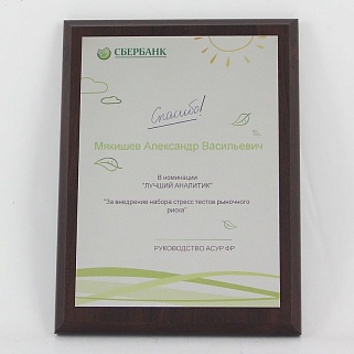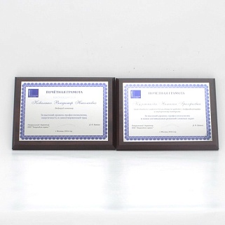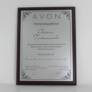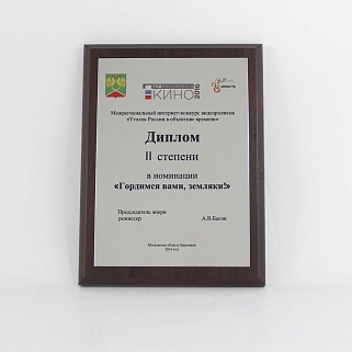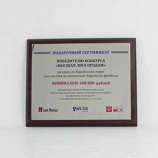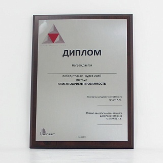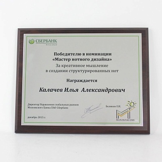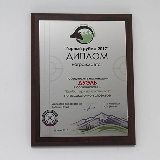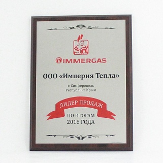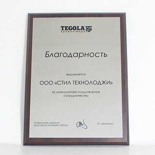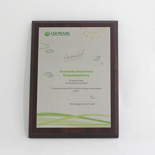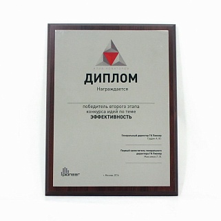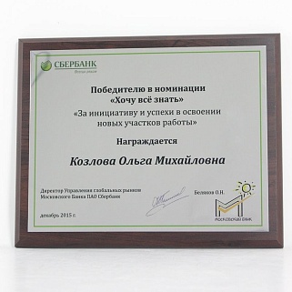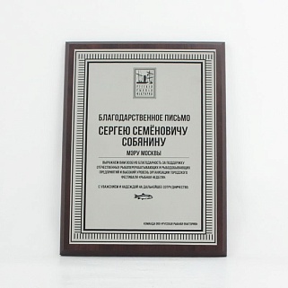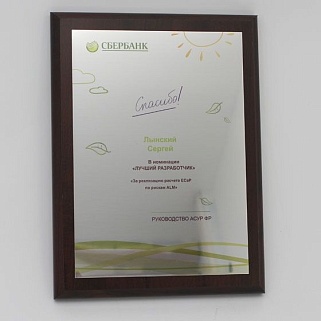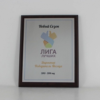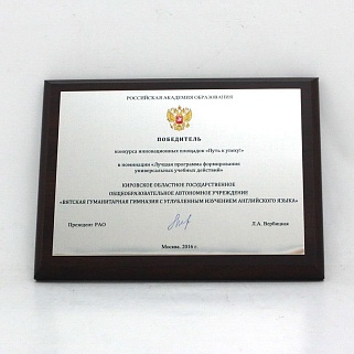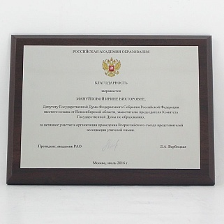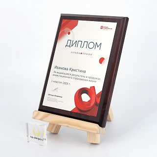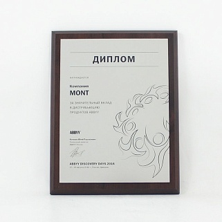 Плакетка из натурального дерева. В комплекте с металлической пластиной серебряного цвета. Полноцветное нанесение любого количества символов и изображений включено в стоимость.