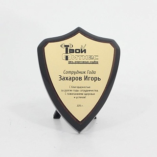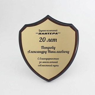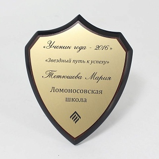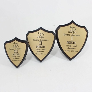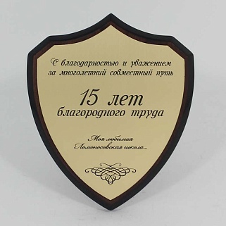Плакетка из натурального дерева. В комплекте с пластиковой пластиной золотого цвета. После гравировки раскрывается черным цветом. Нанесение любого количества символов и изображений включено в стоимость.