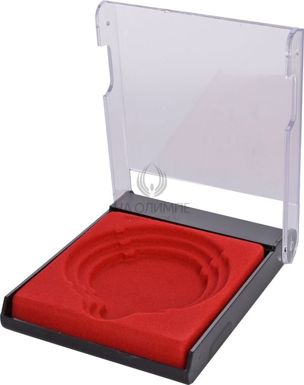 Футляр пластиковый с прозрачной крышкой. Ложемент красного цвета под бархат одинаково хорошо подойдет для медалей диаметром 50, 60 и 70мм.