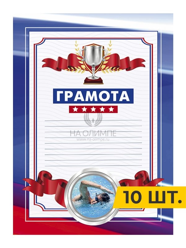 Грамота №35 Плавание (10шт), размеры a4 мм