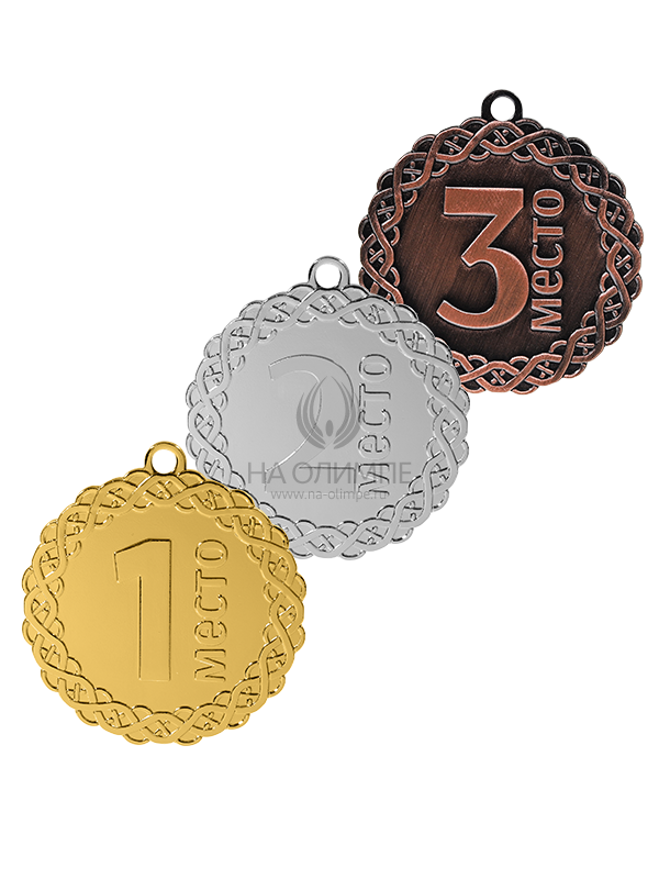 Комплект из 3-х наградных медалей 45 мм "1,2,3 место" (цвет: золото, серебро, бронза). Ленты заказываются отдельно.