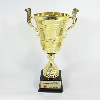 Укомплектуйте Кубок крышкой и разместите на ней тематическую фигурку или эмблемоноситель с вашим логотипом или текстом