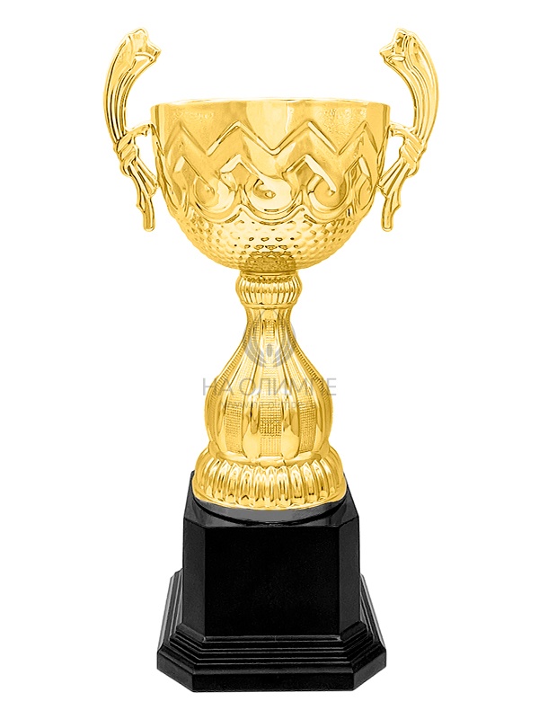 Кубок с металлической чашей и пластиковыми элементами на основании из пластикового постамента