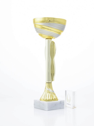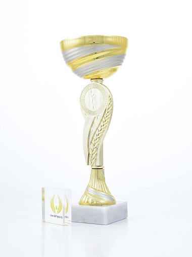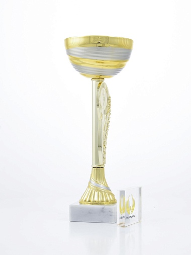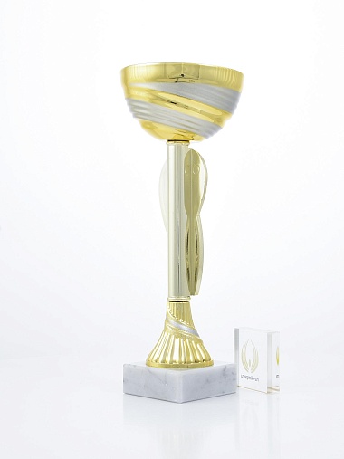 Укомплектуйте Кубок крышкой и разместите на ней тематическую фигурку или эмблемоноситель с вашим логотипом или текстом