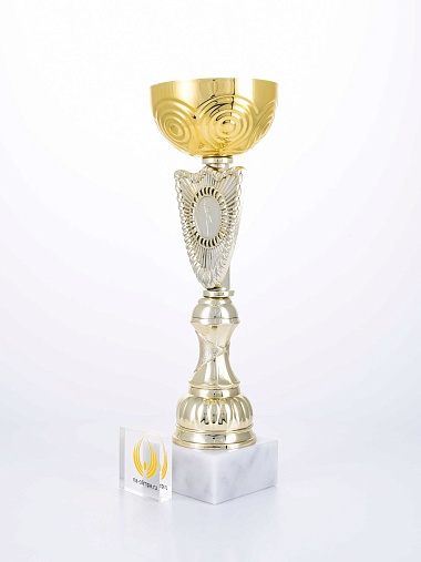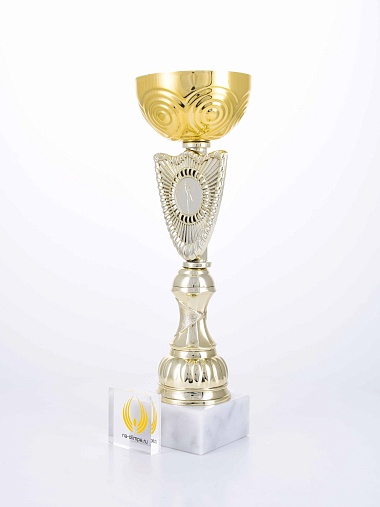 Укомплектуйте Кубок крышкой и разместите на ней тематическую фигурку или эмблемоноситель с вашим логотипом или текстом