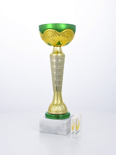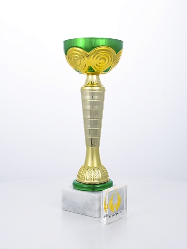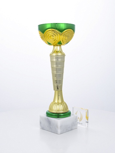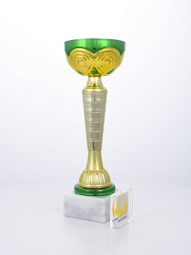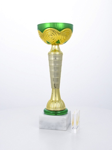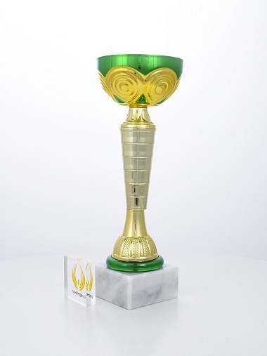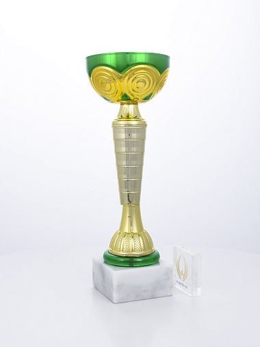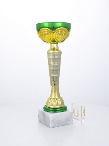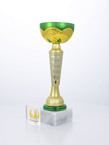 Укомплектуйте Кубок крышкой и разместите на ней тематическую фигурку или эмблемоноситель с вашим логотипом или текстом