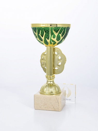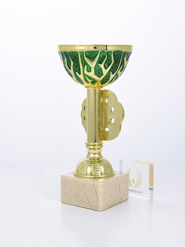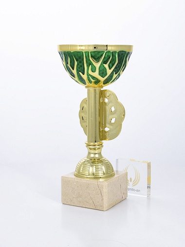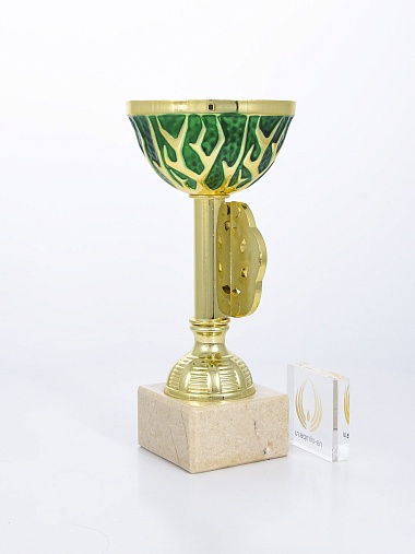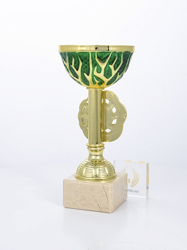 Кубок с металлической чашей на основании из мрамора.