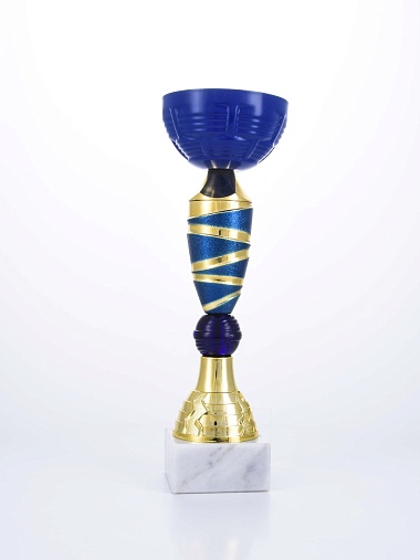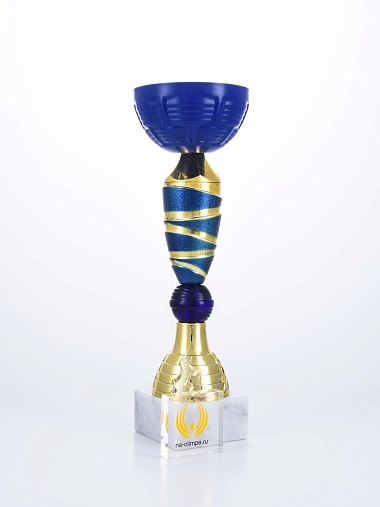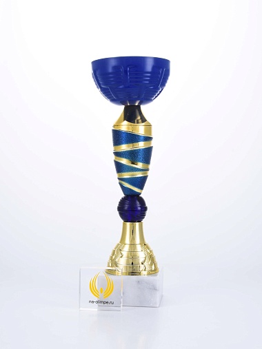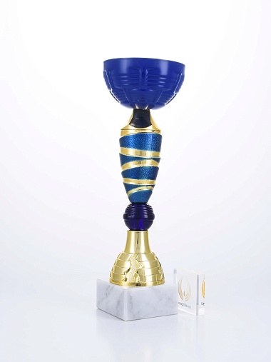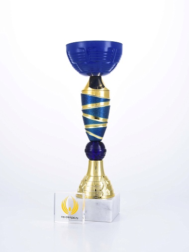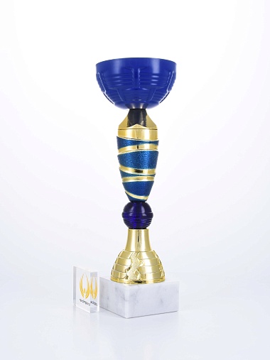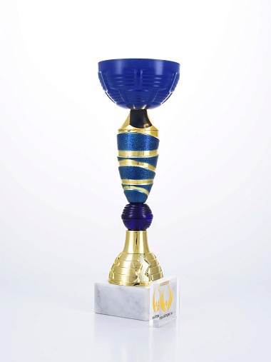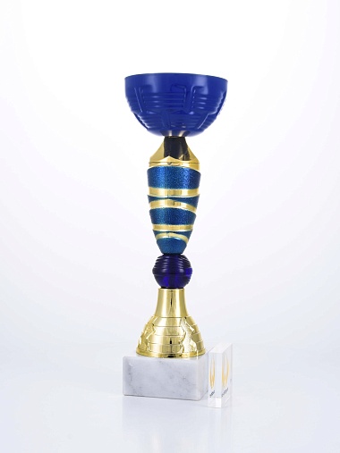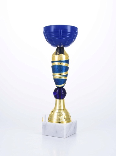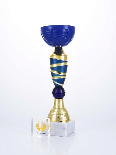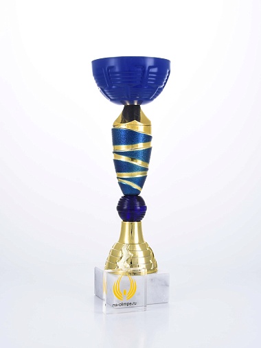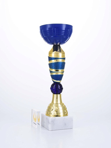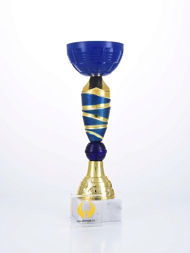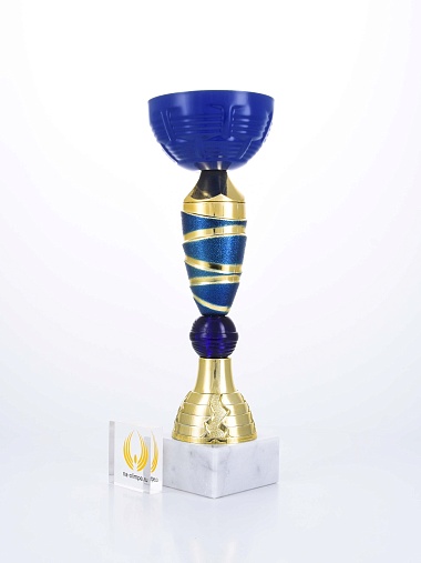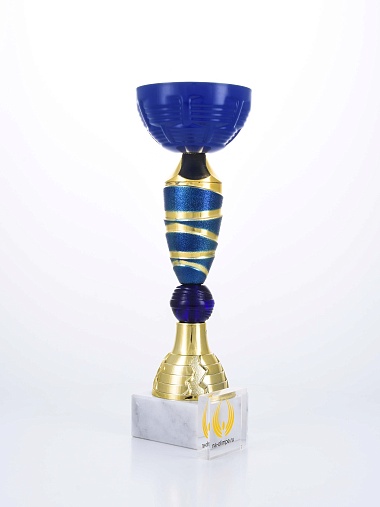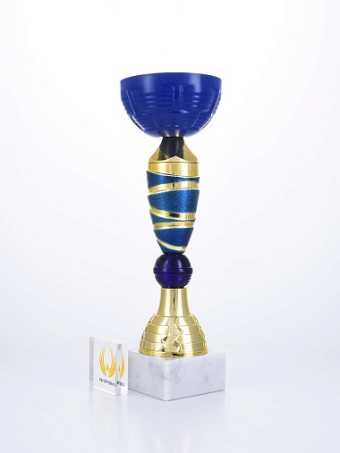 Кубок с металлической чашей и пластиковыми элементами на основании из мрамора.