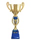 Кубок с металлической чашей и пластиковыми элементами на основании из пластикового постамента.