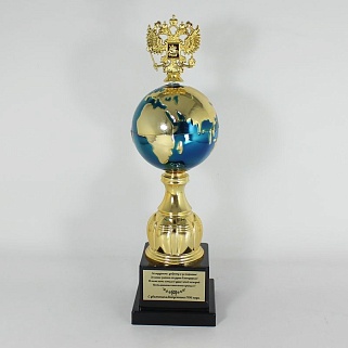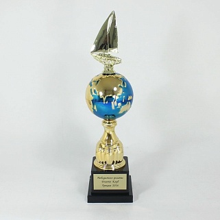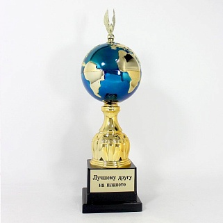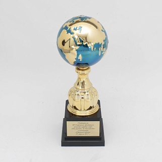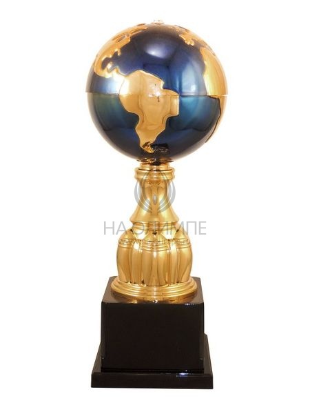 Кубок с чашей в виде глобуса из пластика с креплением под фигурку на основании из пластика.