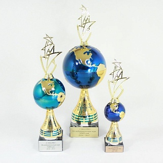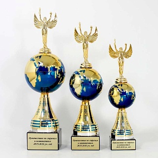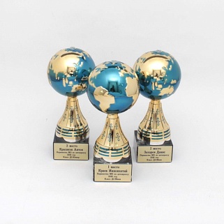 Кубок с чашей в виде глобуса из пластика с креплением под фигурку на основании из мрамора.
