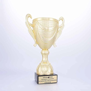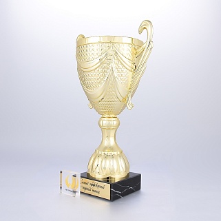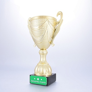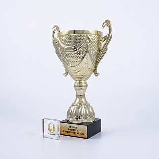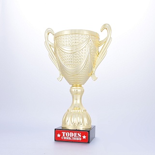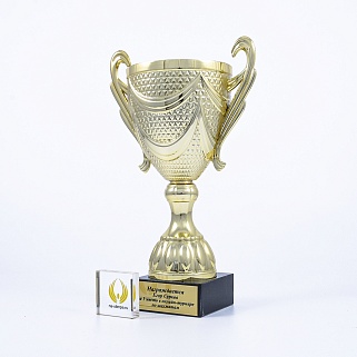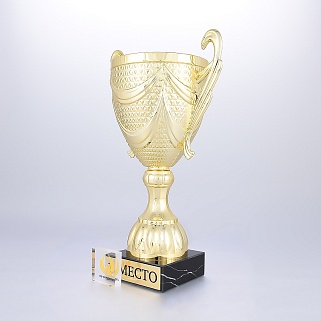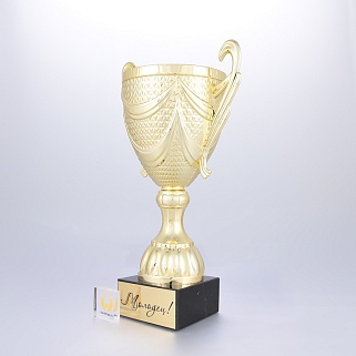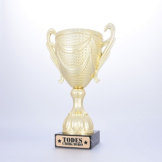 Кубок на основании из мрамора. Представляем вам золотой пластиковый кубок на мраморном основании. Этот кубок создан для того, чтобы отмечать самые значимые моменты в жизни и подчеркивать выдающиеся достижения в самых различных сферах. Кубок сияет ярким, насыщенным золотым цветом, который привлекает внимание и делает его настоящей жемчужиной любого мероприятия. Его утонченные линии и плавные формы создают ощущение грации и величия, подчеркивая статус его обладателя. Достойное дополнение к этому шедевру — шикарное мраморное основание, которое придает кубку неповторимый шик и устойчивость. Мраморное основание кубка можно укомплектовать металлической, пластиковой или заливной табличкой с вашим текстом или логотипом. Примеры исполнения нанесения можно посмотреть на фото примеров или в нашей Галерее. Заказ от 1шт. Доставка в любую точку РФ.