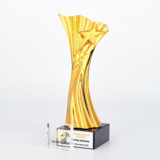 Кубок на основании из мрамора. Представляем вам пластиковый золотой кубок, который выполненный в невероятной форме, привлекает внимание своей оригинальностью. Его гладкие линии и золотистый блеск создают ощущение роскоши и эксклюзивности. На верхней части кубка расположена эффектная звезда, становящаяся центром притяжения взоров. Черное основание контрастирует с золотым сиянием кубка, создавая идеальный баланс между классикой и современным дизайном. Мраморное основание кубка можно укомплектовать металлической, пластиковой или заливной табличкой с вашим текстом или логотипом. Примеры исполнения нанесения можно посмотреть на фото примеров или в нашей Галерее. Заказ от 1шт. Доставка в любую точку РФ.
