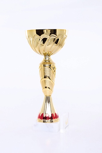 Кубок на основании из мрамора. Представляем вам наш кубок с металлической чашей и красными элементами — это именно то, что вам нужно! Этот кубок, имеющий металлическую чашу с изящным блестящим покрытием, объединяет в себе прочность и утонченность. Красивый красный цвет элементов, аккуратно интегрированных в дизайн, добавляет нотки стиля, делая награду по-настоящему уникальной. Кубок можно укомплектовать крышкой с фигуркой. Тематические фигурки отражают вид спорта или характер события, на котором происходит вручение. Мраморное основание кубка можно укомплектовать металлической, пластиковой или заливной табличкой с вашим текстом или логотипом. Примеры исполнения нанесения можно посмотреть на фото примеров или в нашей Галерее. Заказ от 1шт. Доставка в любую точку РФ.
